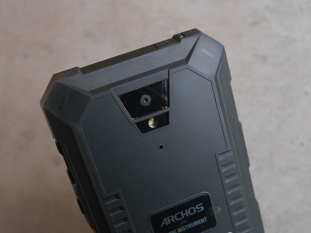 Tylny panel nie jest demontowalny, nie ma też dostępu do baterii. Znajduje się tu też plakietka wskazująca na producenta - czyli Archos - oraz kolejną firmę, która brała udział w procesie tworzenia opisywanego modelu - Logic Instrument. To francuski koncern, który projektuje, produkuje i sprzedaje notebooki i tablety do zastosowań przemysłowych i wojskowych pod markami Fieldbook TETRA i OptiVue. Od 2014 roku firma ta należy do Archos.