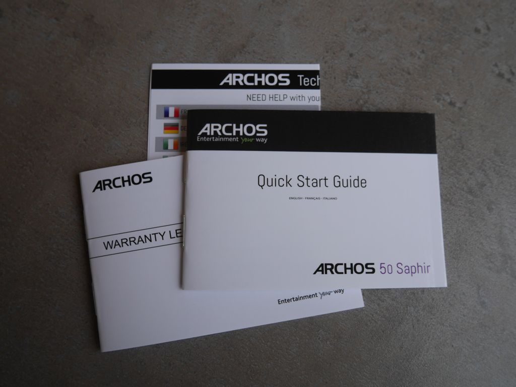 Zestaw, z jakim dostajemy model Archos 50 Saphir, nie jest szczególnie rozbudowany. Smartfonowi towarzyszy 1,67A ładowarka sieciowa, kabel USB-microUSB, prosty zestaw słuchawkowy z słuchawkami dousznymi i pilotem do odbierania połączeń. Wtyczki są nieco dłuższe od standardowych, dopasowane są do pogrubionej obudowy. Znajdziemy tu też lakoniczną instrukcję, kartę gwarancyjną oraz folię ochronną na ekran.