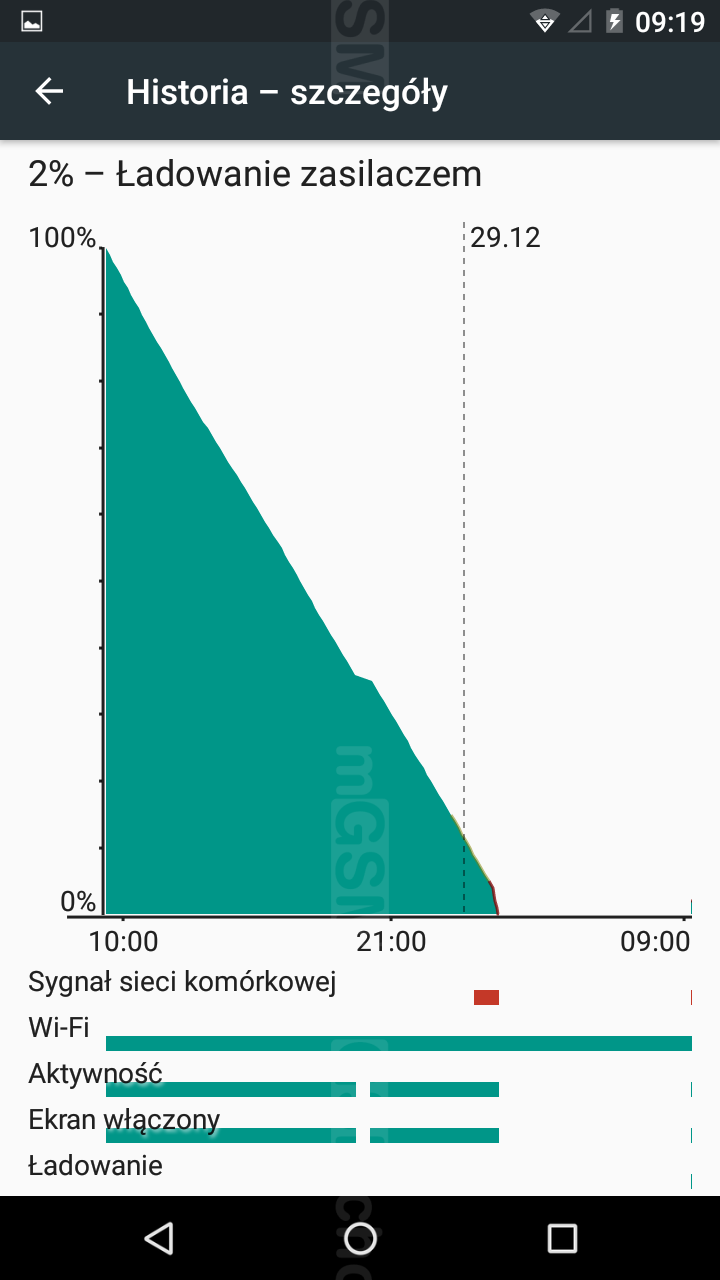 - 10 godzin nocnych, spędzonych przez telefon w trybie czuwania, pozbawiło baterię 5% energii