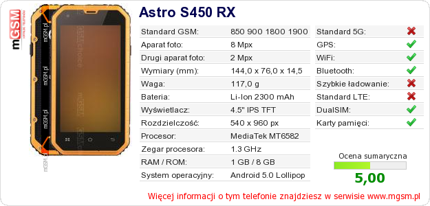 Dane telefonu Astro S450 RX na Twojej stronie