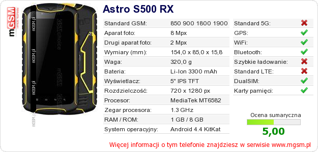 Dane telefonu Astro S500 RX na Twojej stronie
