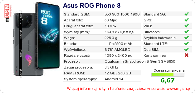 Dane telefonu Asus ROG Phone 8 na Twojej stronie