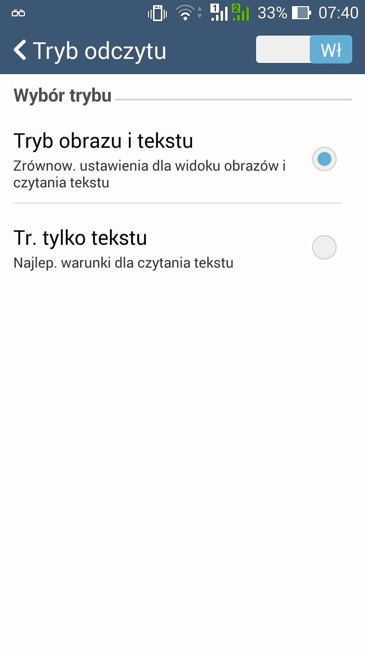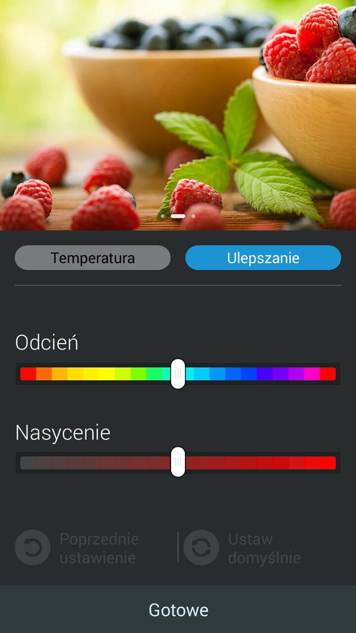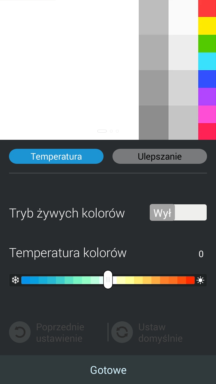 Jest tu nawet odrębny tryb dla fanów e-booków, w którym kolorystyka i jasność ustawiane są dla uzyskania optymalnych warunków czytania (ikona z okularami w menu szybkich ustawień). Nie zabrakło automatycznej i manualnej regulacji jasności (choć w słońcu trudno cokolwiek dostrzec na ekranie), ale prawdziwym smaczkiem jest aplikacja Splendid, przy pomocy której szybko dopasujemy temperaturę, odcień i nasycenie kolorów. Nie można zapomnieć o odporności ekranu, za którą odpowiada szkło Gorilla Glass 3 oraz opcji "Tryb Rękawiczek", w której zwiększona zostaje czułość ekranu i możliwa jest jego obsługa w rękawiczkach.