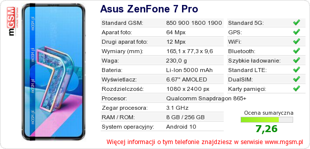 Dane telefonu Asus ZenFone 7 Pro na Twojej stronie