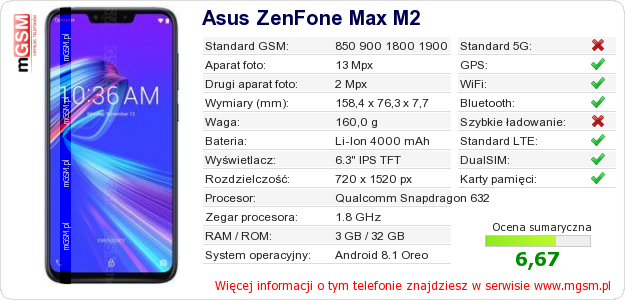Dane telefonu Asus ZenFone Max M2 na Twojej stronie