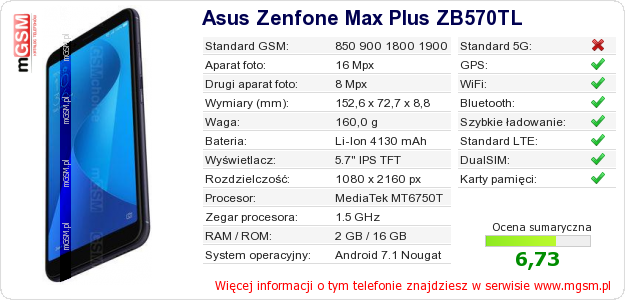 Dane telefonu Asus Zenfone Max Plus ZB570TL na Twojej stronie