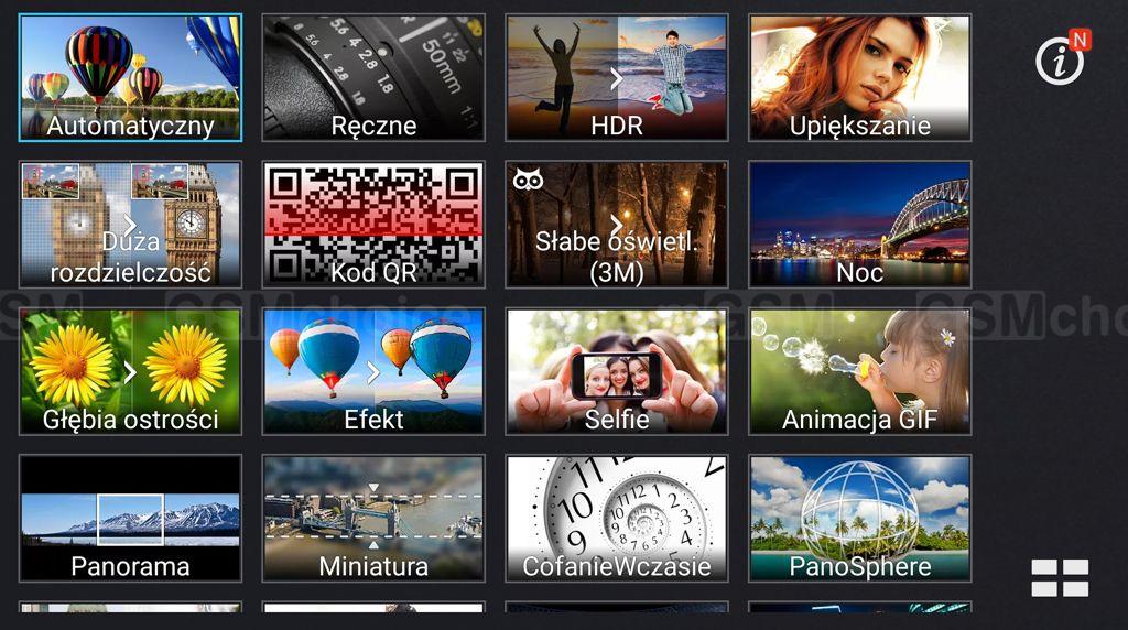 Fotki można robić w trybie automatycznym, ale jest też tryb manualny, który pozwoli na większą kontrolę nad parametrami zdjęć (m.in. regulacja ISO, balans bieli czy pomiar ostrości). W ustawieniach można zmienić rozdzielczość, ostrość, jakość zdjęcia i inne parametry, ale prawdziwą frajdę dostarczają różne tryby rejestrowania obrazów, w tym panorama, HDR, miniatura, głębia ostrości czy różnorodne efekty kolorystyczne, animacja GIF i inteligentne usuwanie obiektów ze zdjęć. Generalnie jest 20 trybów, które urozmaicą nasze fotki i pozwolą na uzyskanie naprawdę interesujących efektów.