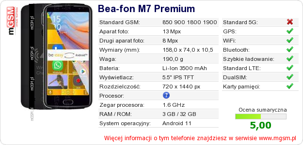 Dane telefonu Bea-fon M7 Premium na Twojej stronie
