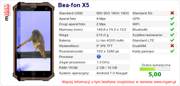 Dane telefonu Bea-fon X5 na Twojej stronie