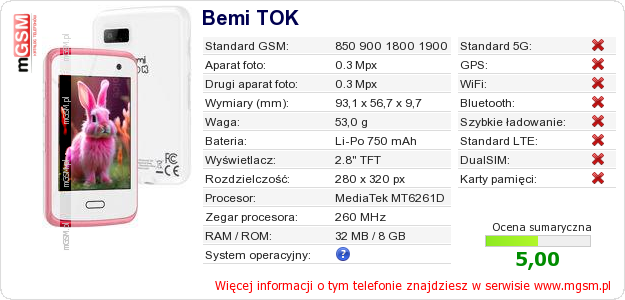 Dane telefonu Bemi TOK na Twojej stronie