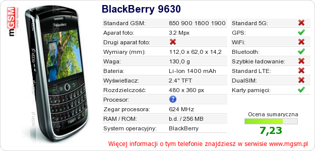 Dane telefonu BlackBerry 9630 na Twojej stronie