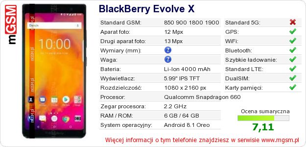 Dane telefonu BlackBerry Evolve X na Twojej stronie