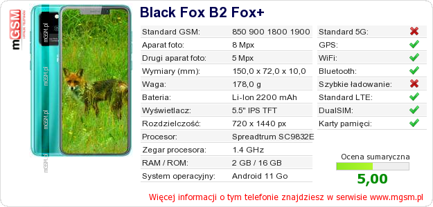 Dane telefonu Black Fox B2 Fox+ na Twojej stronie