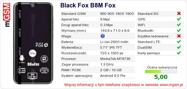 Dane telefonu Black Fox B8M Fox na Twojej stronie