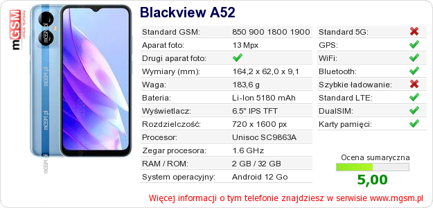 Dane telefonu Blackview A52 na Twojej stronie