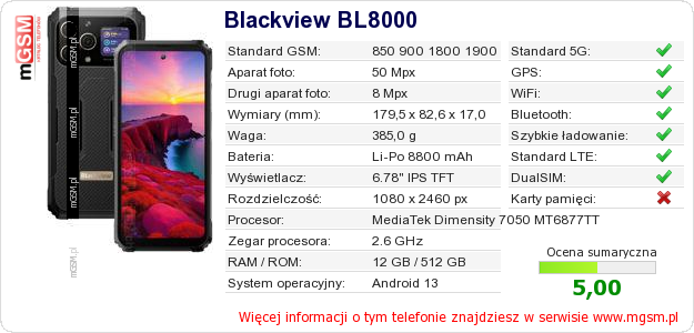 Dane telefonu Blackview BL8000 na Twojej stronie
