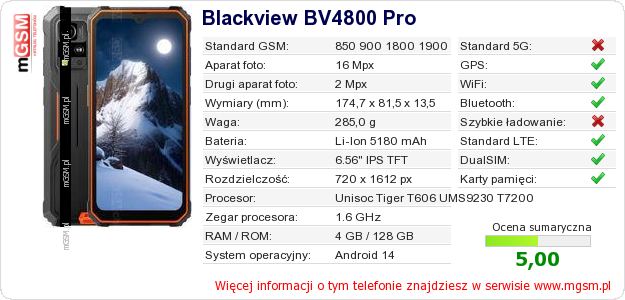 Dane telefonu Blackview BV4800 Pro na Twojej stronie