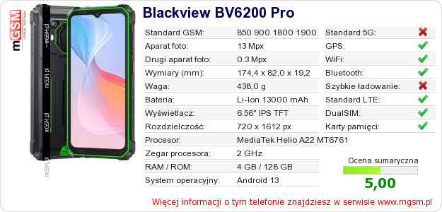 Dane telefonu Blackview BV6200 Pro na Twojej stronie