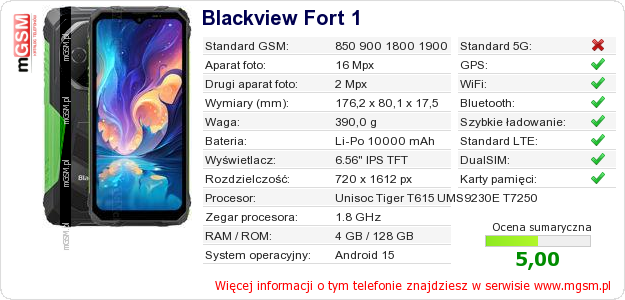 Dane telefonu Blackview Fort 1 na Twojej stronie