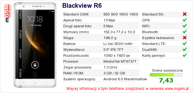 Dane telefonu Blackview R6 na Twojej stronie