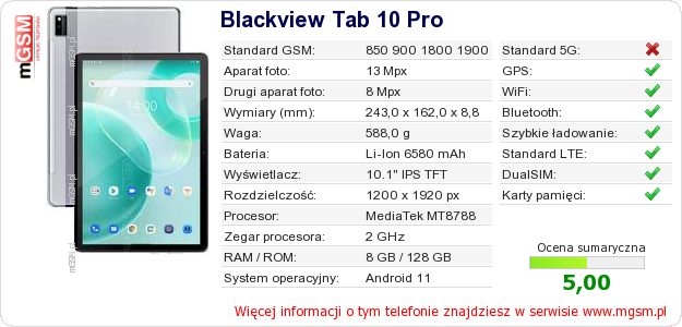 Dane telefonu Blackview Tab 10 Pro na Twojej stronie