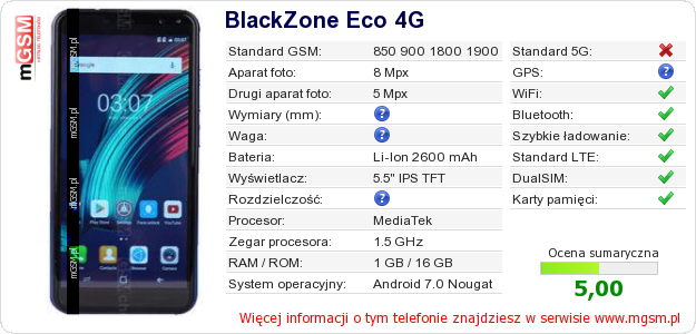 Dane telefonu BlackZone Eco 4G na Twojej stronie