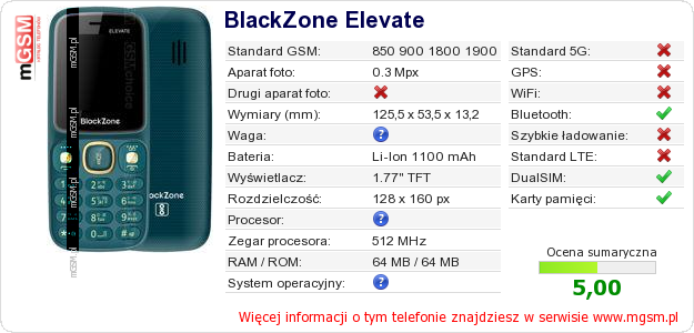 Dane telefonu BlackZone Elevate na Twojej stronie