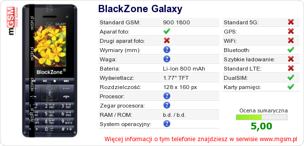 Dane telefonu BlackZone Galaxy na Twojej stronie