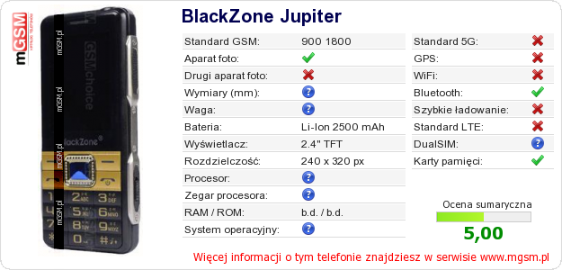 Dane telefonu BlackZone Jupiter na Twojej stronie