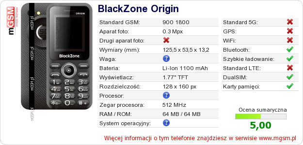Dane telefonu BlackZone Origin na Twojej stronie