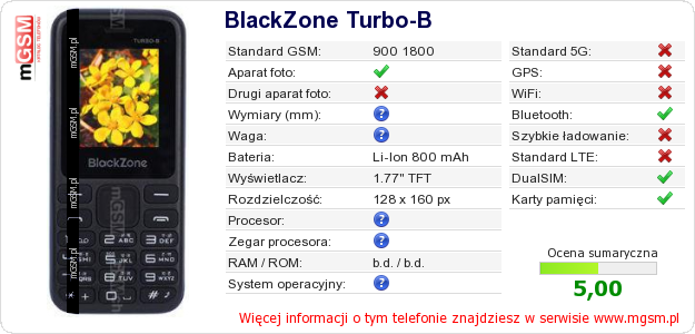 Dane telefonu BlackZone Turbo-B na Twojej stronie