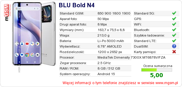 Dane telefonu BLU Bold N4 na Twojej stronie