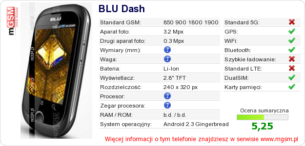 Dane telefonu BLU Dash na Twojej stronie
