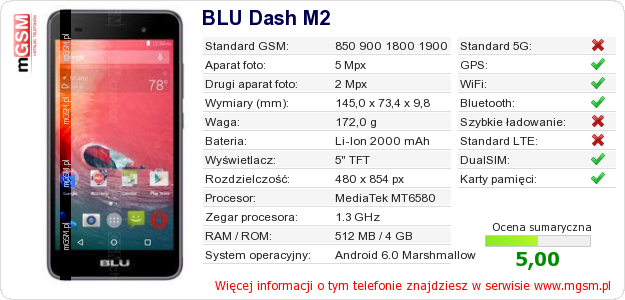 Dane telefonu BLU Dash M2 na Twojej stronie
