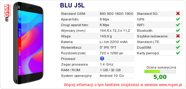 Dane telefonu BLU J5L na Twojej stronie