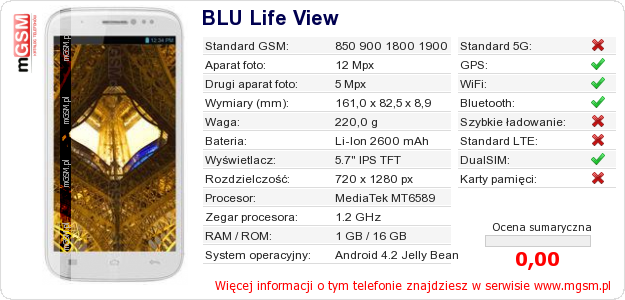 Dane telefonu BLU Life View na Twojej stronie