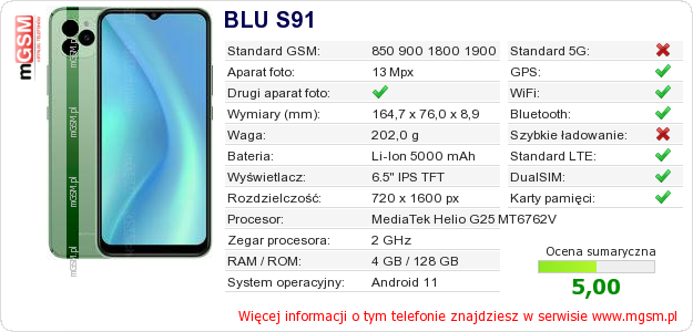Dane telefonu BLU S91 na Twojej stronie