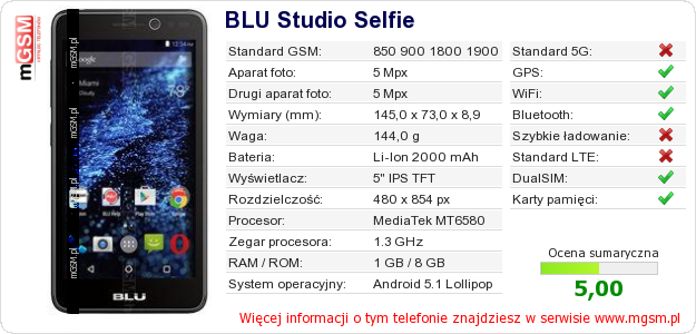 Dane telefonu BLU Studio Selfie na Twojej stronie