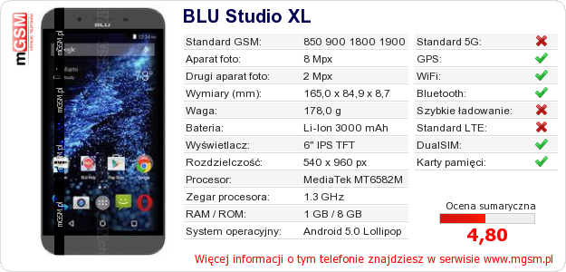 Dane telefonu BLU Studio XL na Twojej stronie