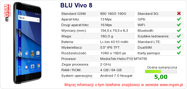 Dane telefonu BLU Vivo 8 na Twojej stronie