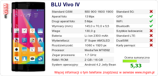 Dane telefonu BLU Vivo IV na Twojej stronie