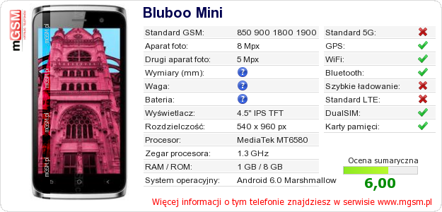 Dane telefonu Bluboo Mini na Twojej stronie