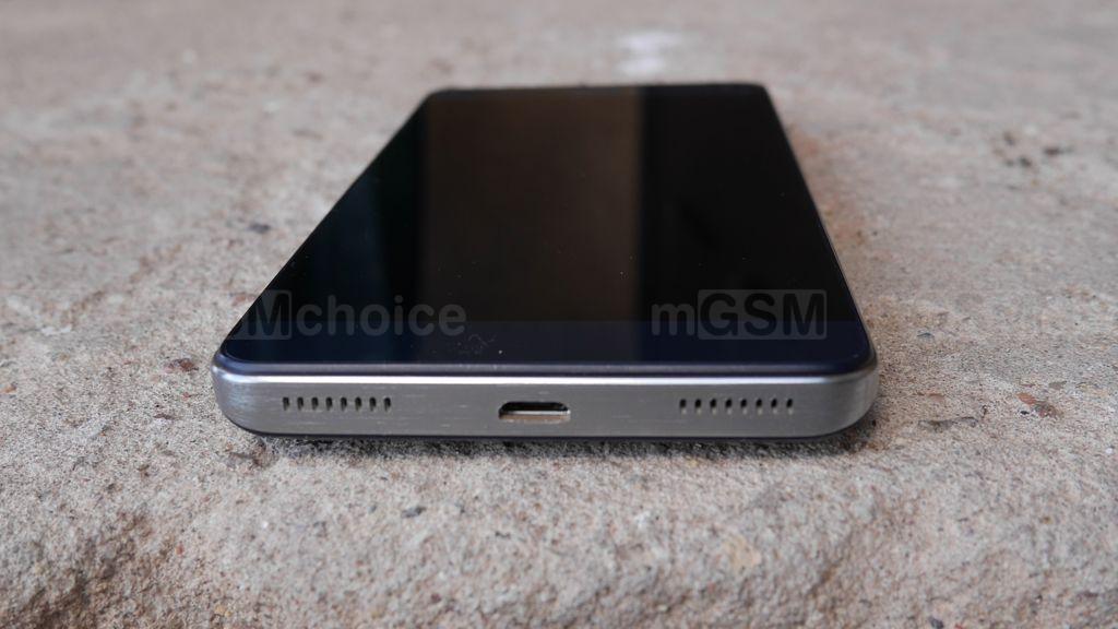 Ramka wokół telefonu dość dobrze imituje metal i zlokalizowane są na niej nie tylko przyciski i porty, ale i głośnik. Na górnej krawędzi znalazł się mikrofon i uniwersalne gniazdo słuchawkowe, na prawej dobrze wyczuwalne przyciski regulacji głośności i włącznika/blokady ekranu. Na dolnej jest centralnie umieszczony port microUSB oraz otwory, sugerujące obecność dwóch głośników. Ale w praktyce tylko jeden ciąg otworów faktycznie ukrywa głośnik - drugi tylko robi dobre wrażenie.