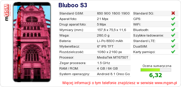 Dane telefonu Bluboo S3 na Twojej stronie