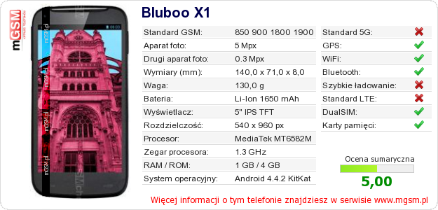 Dane telefonu Bluboo X1 na Twojej stronie