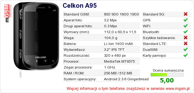 Dane telefonu Celkon A95 na Twojej stronie