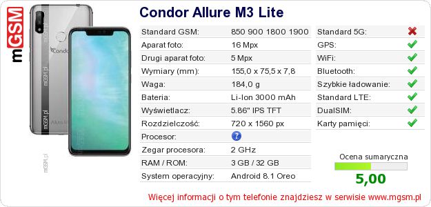 Dane telefonu Condor Allure M3 Lite na Twojej stronie