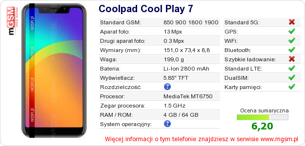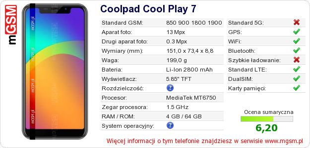 Dane telefonu Coolpad Cool Play 7 na Twojej stronie