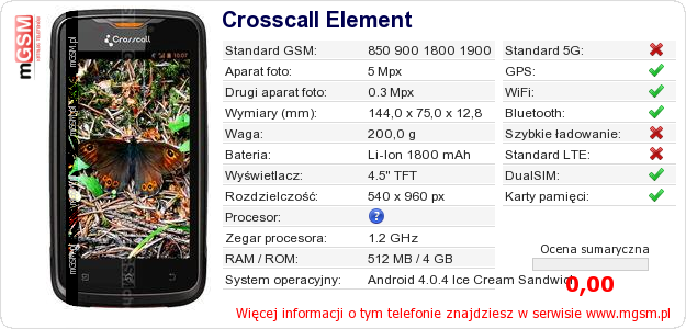 Dane telefonu Crosscall Element na Twojej stronie