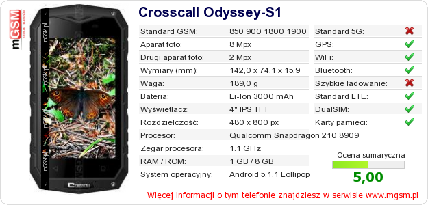 Dane telefonu Crosscall Odyssey-S1 na Twojej stronie